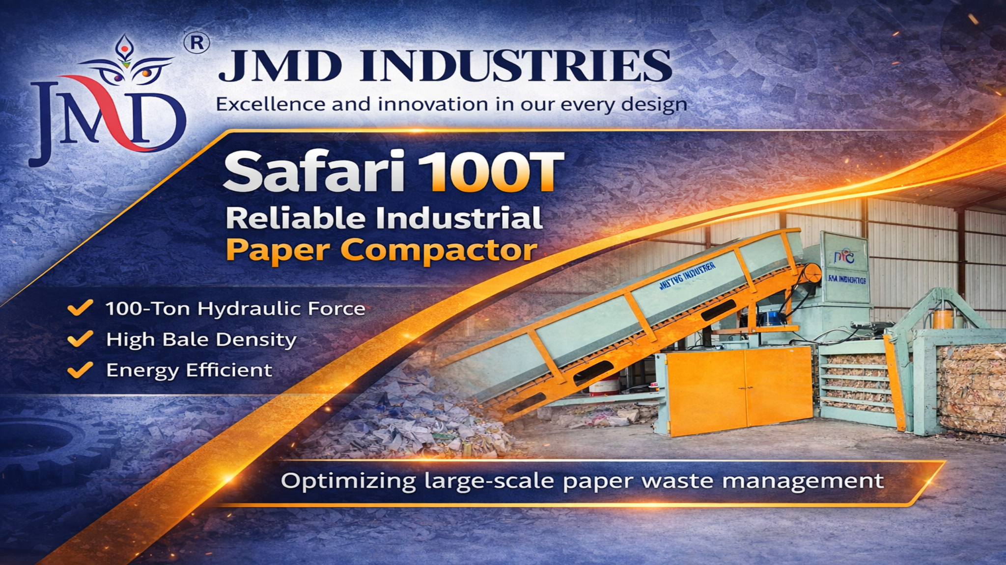 To address this challenge efficiently, JMD Industries presents the Safari 100T — a reliable industrial paper compactor designed for high-capacity, heavy-duty applications. This machine converts bulk paper waste into tightly compressed, high-density bales, significantly improving storage management and logistics efficiency.